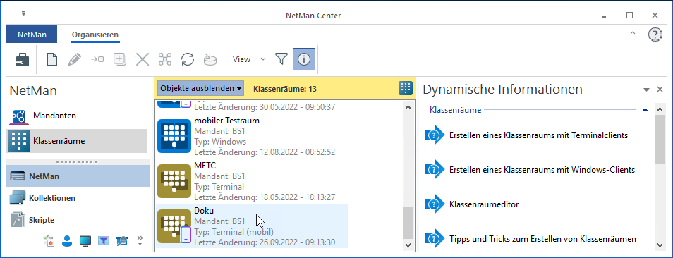 Um einen bestehenden Klassenraum zu bearbeiten, doppelklicken Sie den entsprechenden Klassenraum im NetMan Center. |