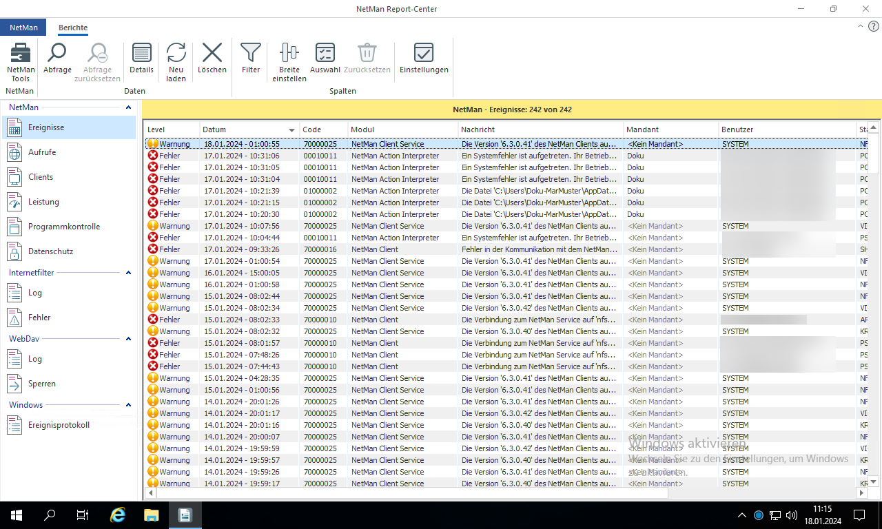 Wie Sie Ihre Protokollabfrage filtern, lesen Sie im Kapitel Berichte anzeigen im Report Center.