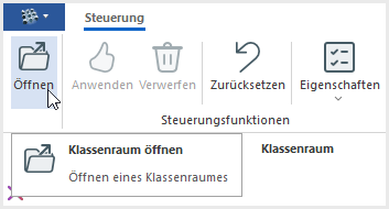 Um einen weiteren Klassenraum zu öffnen, wähle in der Menüleiste der Klassenraumsteuerung den Button Öffnen.
